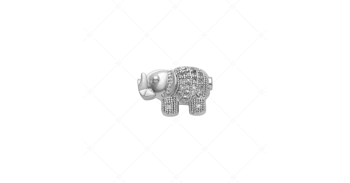 Modischer Elefanten Form Spacer Charme. Hergestellt aus Kupfer 925 Sterling versilbert. Die glitzernden, klaren Zirkonia Edelsteine machen ihn noch besonderer. Die Spacer sorgen dafür, dass die Charmes und Perlen nicht von Ihrem Armband abrutschen.