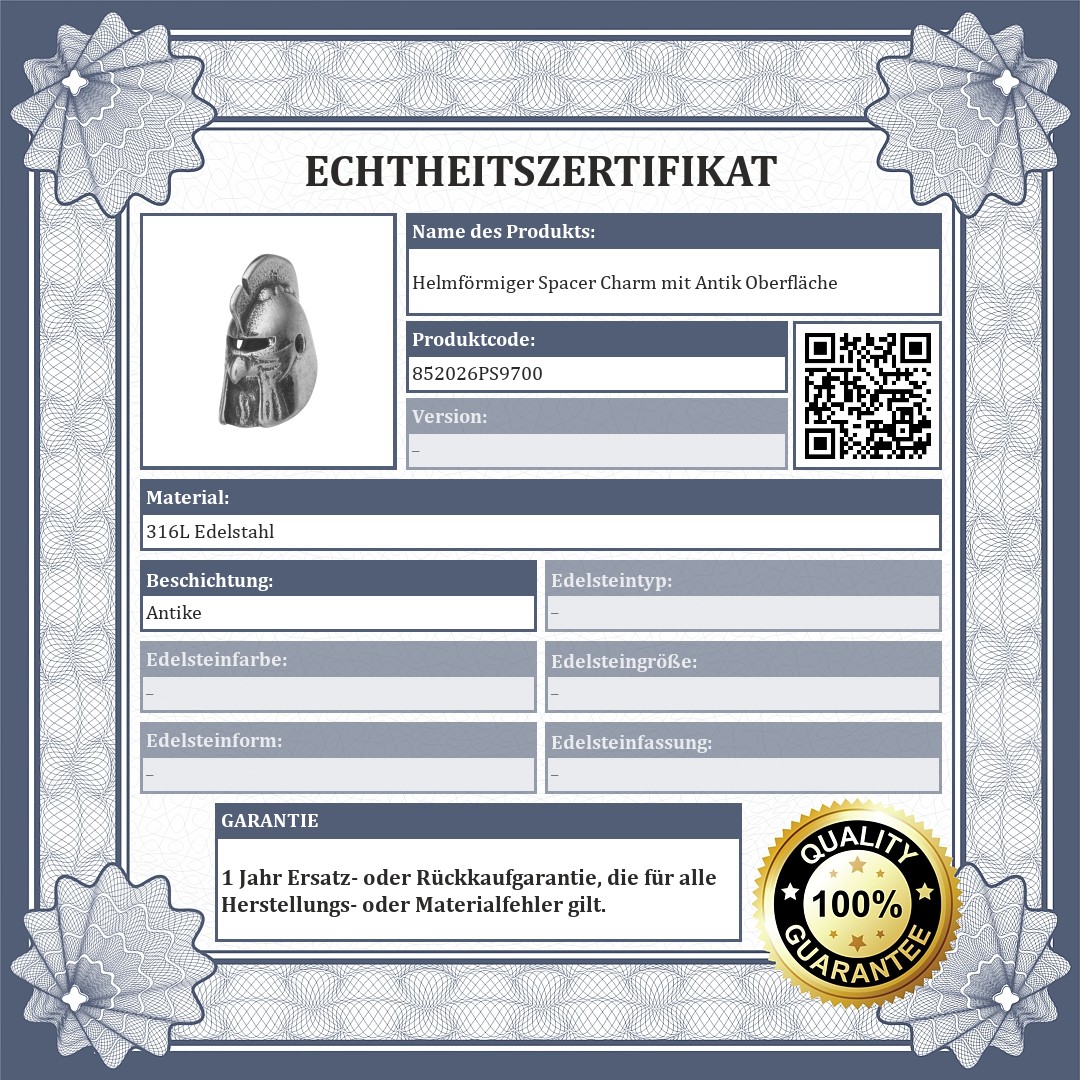 Helmförmiger Spacer Charme. Die Oberfläche dieses Zubehör aus medizinischem 316L-Edelstahl hat einen speziellen Antik-Effekt. Die Spacer sorgen dafür, dass Charmes und Perlen nicht von Ihrem Armband abrutschen.