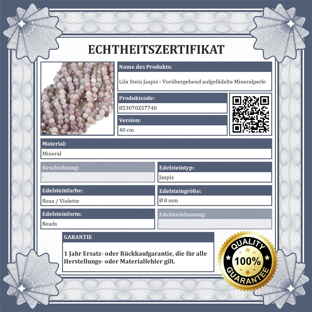 Lila Stein Jaspis - Vorübergehend aufgefädelte Mineralperle