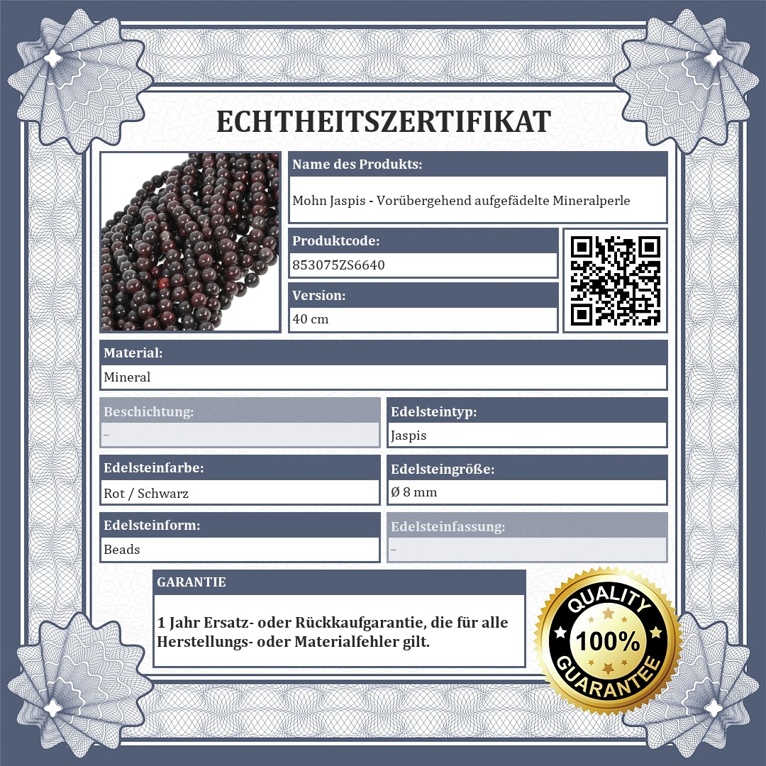 Mohn Jaspis - Vorübergehend aufgefädelte Mineralperle