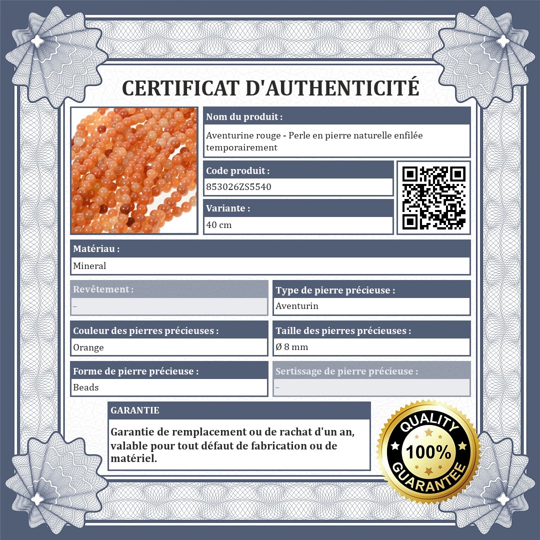 Aventurine rouge - Perle en pierre naturelle enfilée temporairement