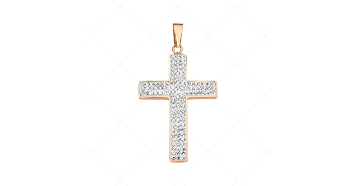 BALACNO - Asella / Pendentif en forme de croix avec des cristaux, plaqué or rose 18K