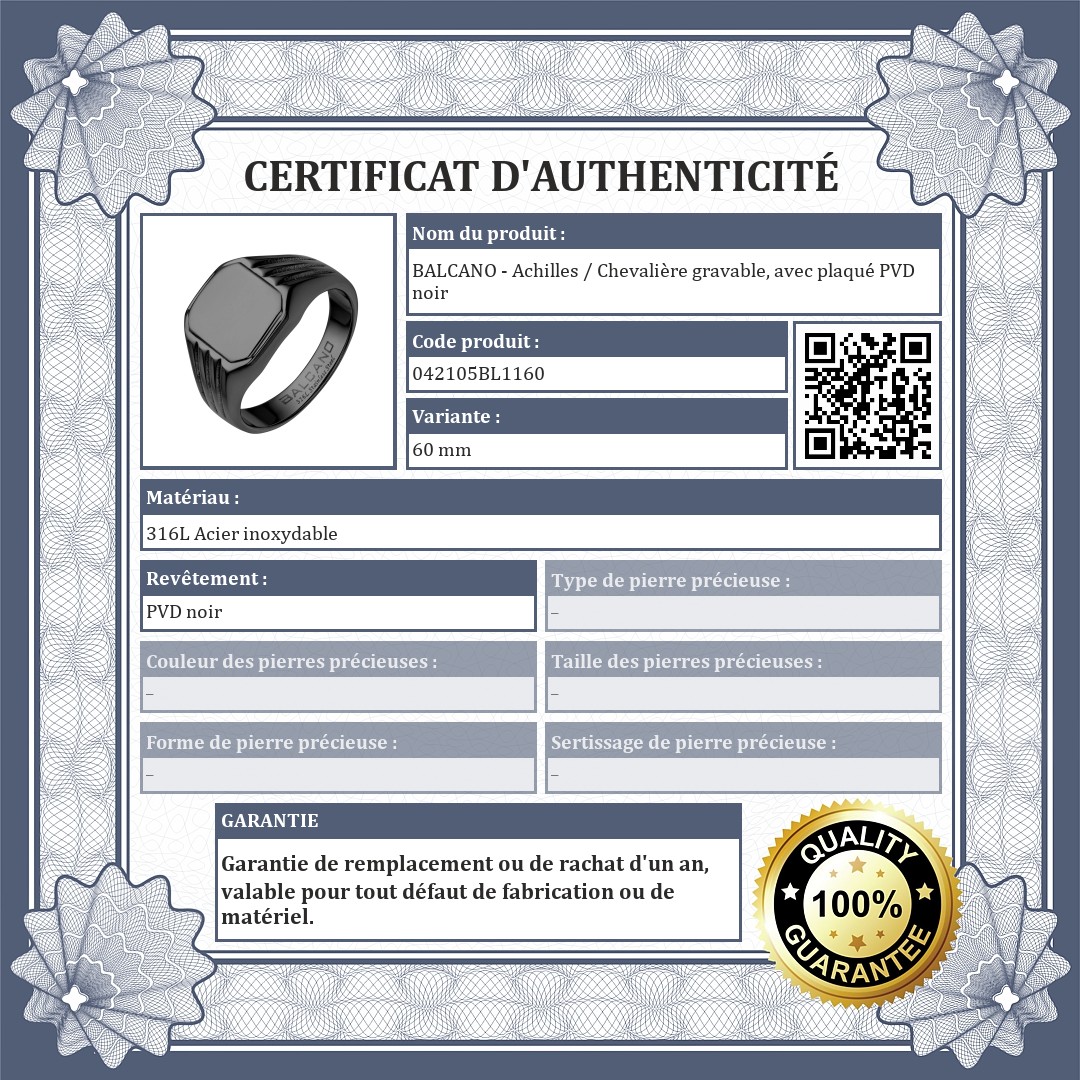 BALCANO - Achilles / Chevalière gravable, avec plaqué PVD noir