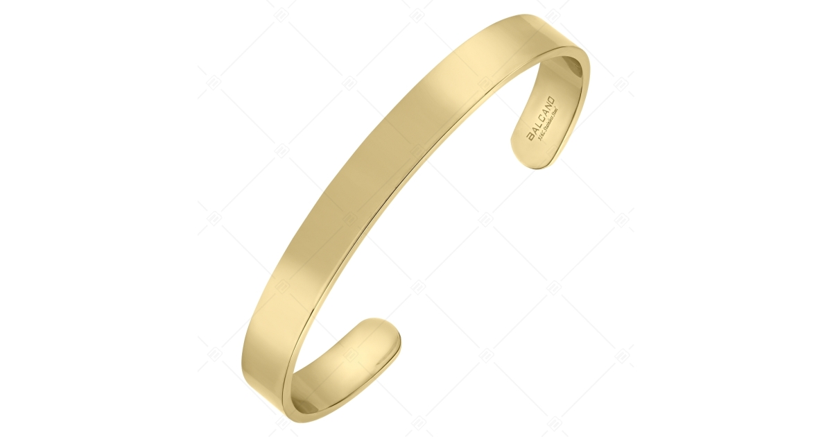 Bracelet classique en acier inoxydable médical 316L, plaqué or 18K. Ouvert à l'arrière pour pouvoir l'enlever et l'enfiler facilement. Fabriqué dans un matériau de haute qualité, conçu pour un usage quotidien. La surface est lisse, ce qui permet de la graver pour créer un bijou unique.