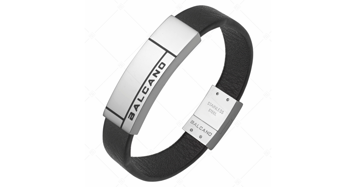 Bracelet en cuir à la mode avec une tête en acier inoxydable 316L anti-allergique décorée avec l'inscription de la marque BALCANO. Il est équipé d'un fermoir magnétique sécurisé. Accessoire élégant et épuré à porter au quotidien.