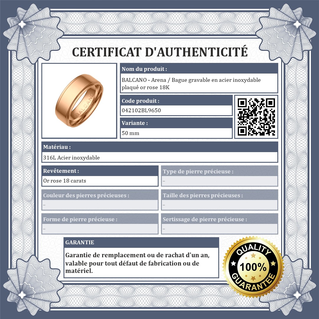 Bague en acier inoxydable 316L antiallergique, plaqué or rose 18K. Bijou en acier de haute qualité, adaptés à la gravure de textes et de motifs individuels.