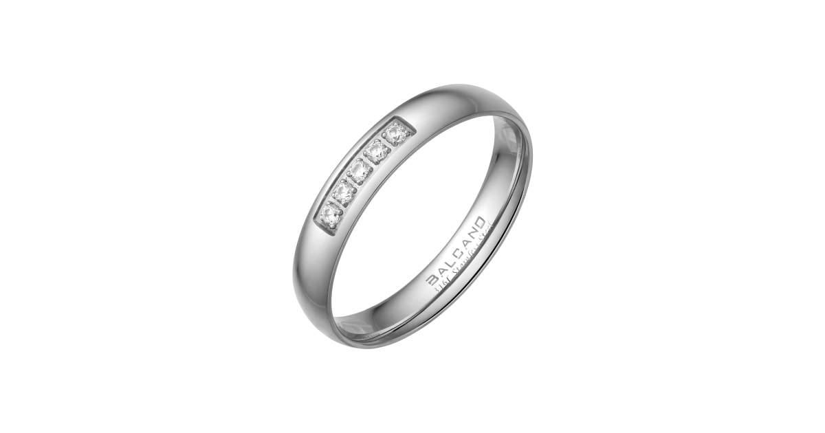 BALCANO - / Bague de mariageen acier inoxydable avec pierres zirconium, plaqué or 18K