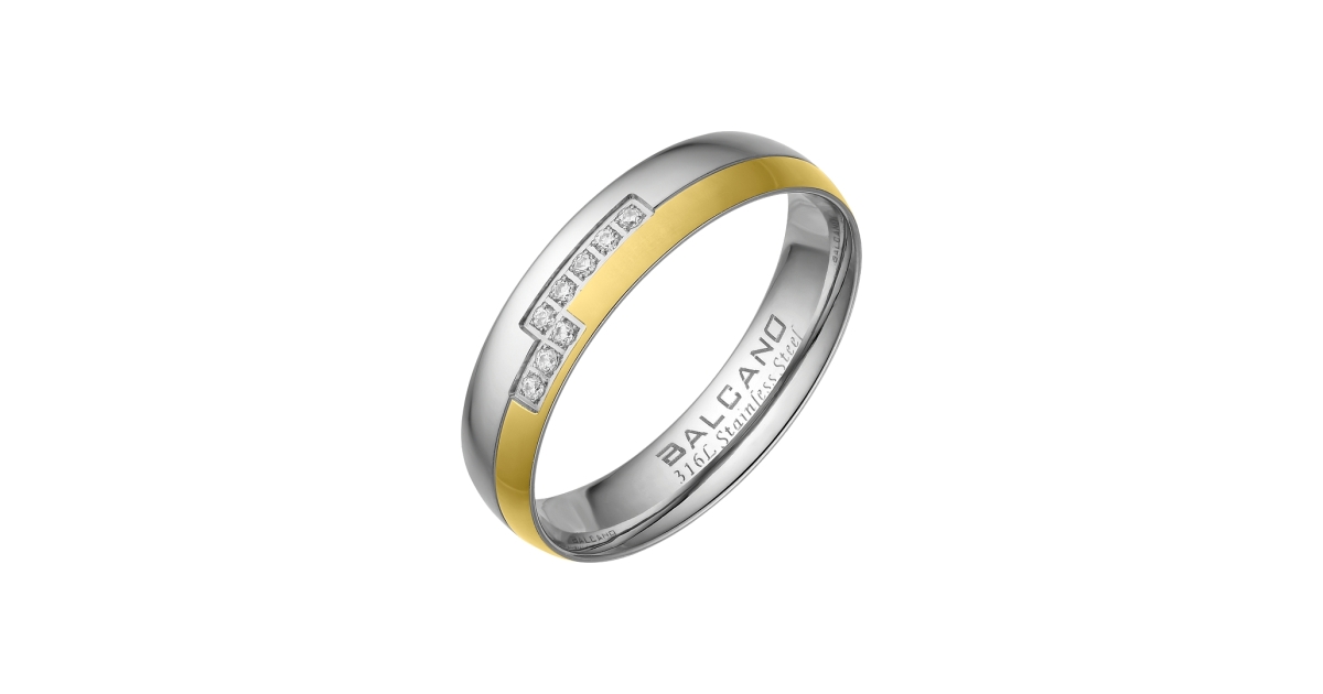 BALCANO - / Bague de mariageen acier inoxydable avec pierres zirconium, plaqué or 18K