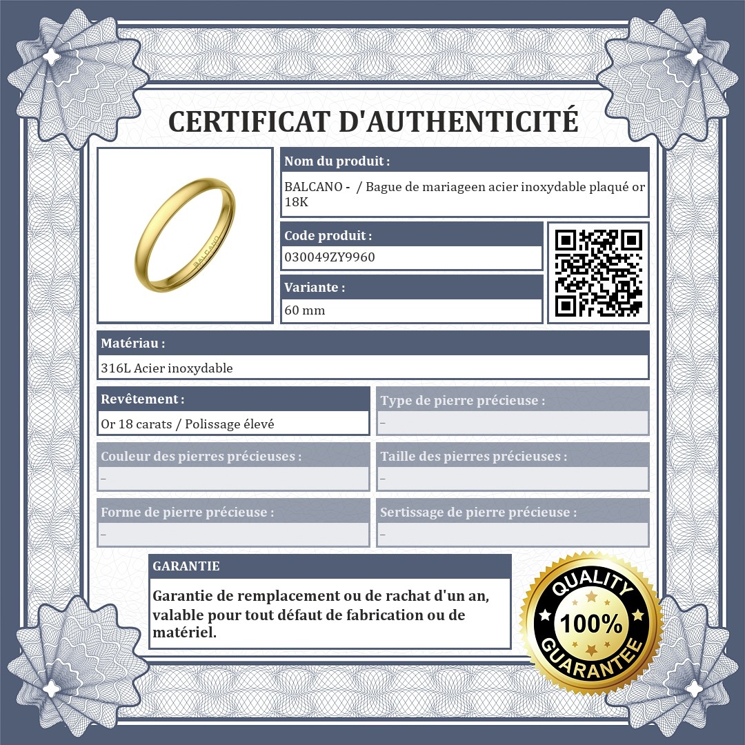 BALCANO - / Bague de mariageen acier inoxydable plaqué or 18K