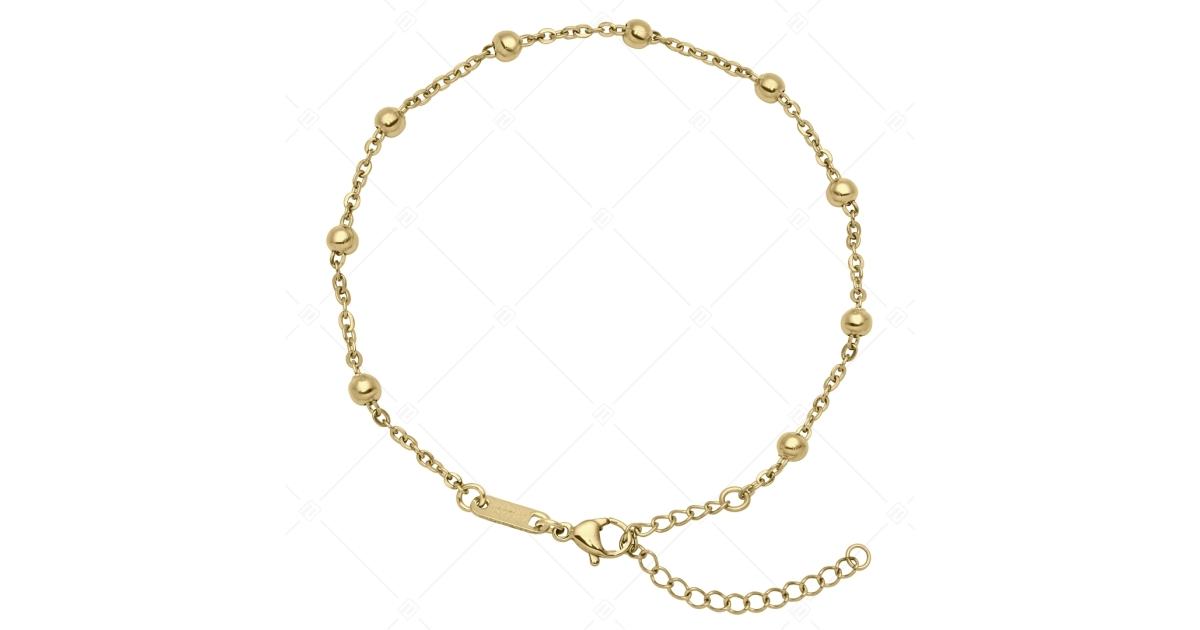 BALCANO - Beaded Cable / Bracelet de cheville d'ancres à baies en acier inoxydable plaqué or 18K - 2 mm