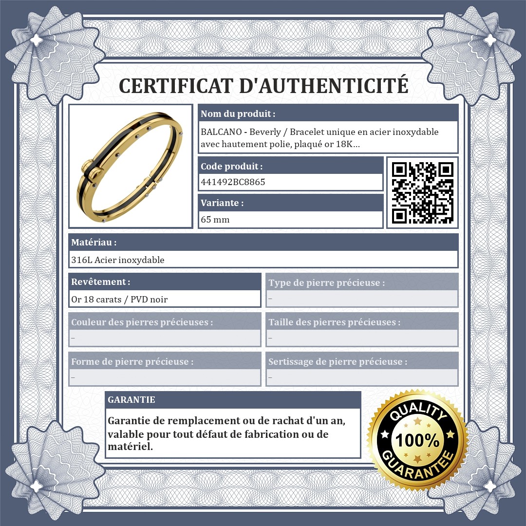 BALCANO - Beverly / Bracelet unique en acier inoxydable avec hautement polie, plaqué or 18K et PVD noir