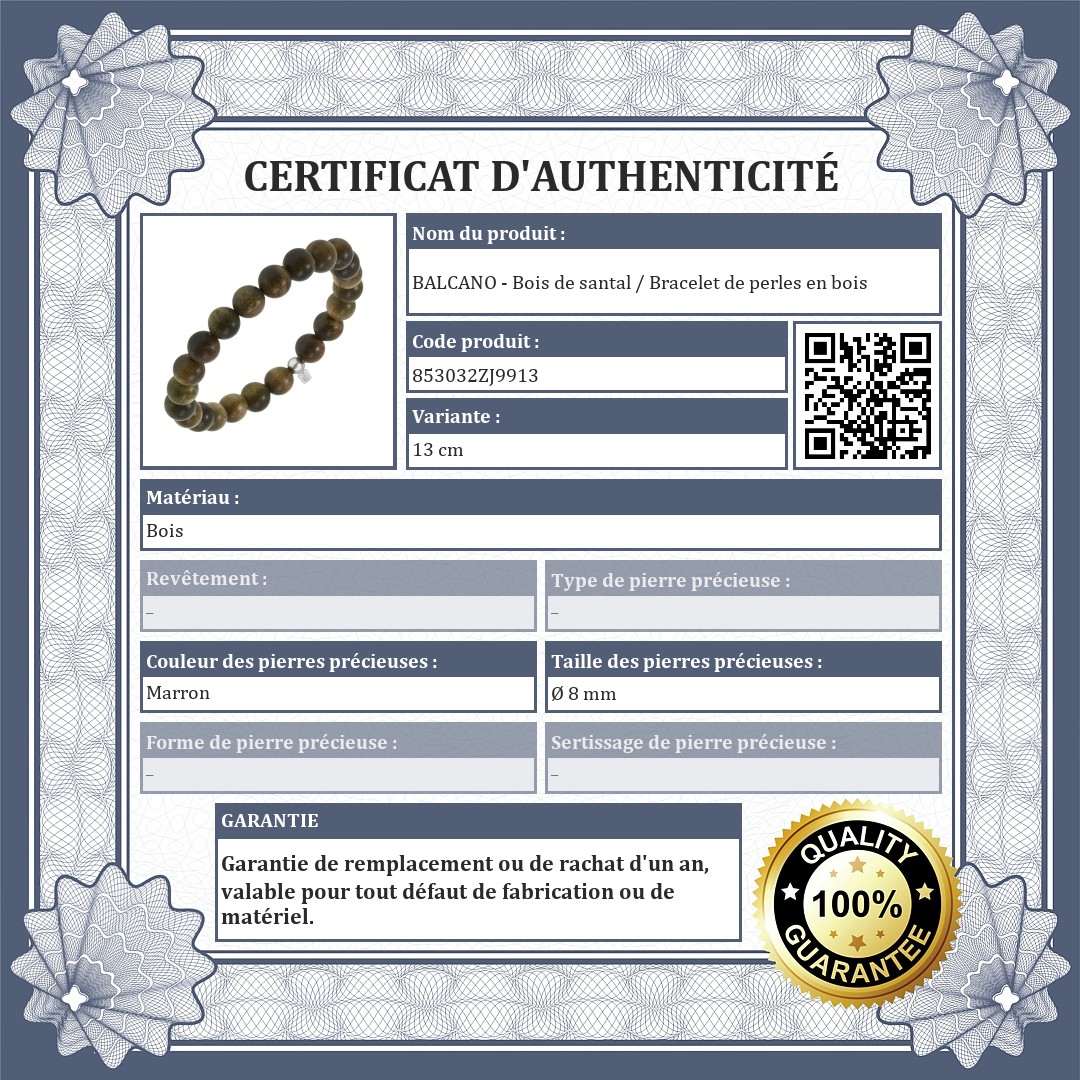 BALCANO - Bois de santal / Bracelet de perles en bois