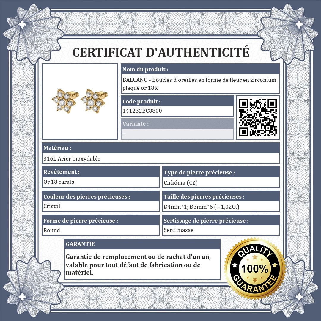 BALCANO - Boucles d'oreilles en forme de fleur en zirconium plaqué or 18K