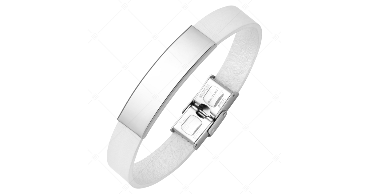 BALCANO - Bracelet en cuir blanc avec tête rectangulaire gravable en acier inoxydable