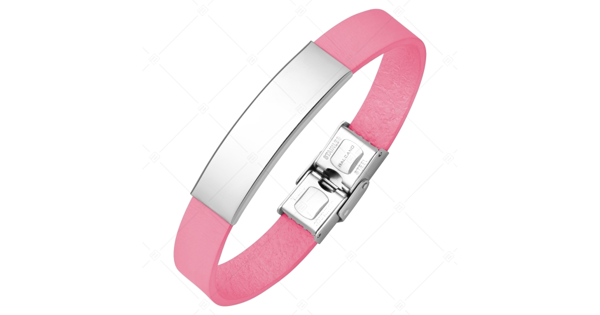 BALCANO - Bracelet en cuir rose avec tête rectangulaire gravable en acier inoxydable