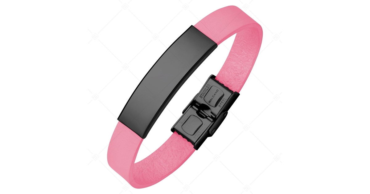 BALCANO - Bracelet en cuir rose avec une tête gravable en acier inoxydable plaqué PVD noir