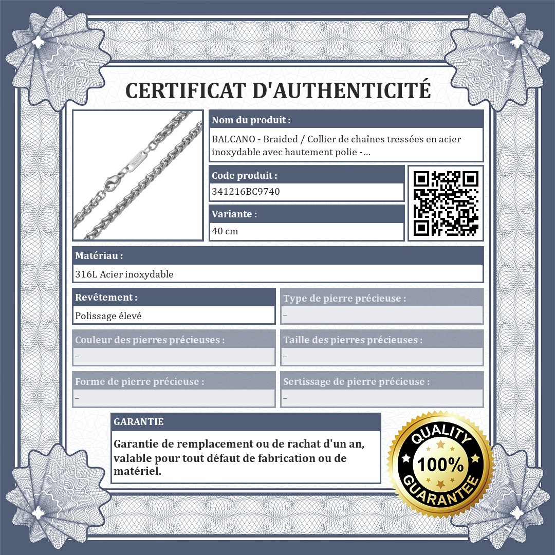 BALCANO - Braided / Collier de chaînes tressées en acier inoxydable avec hautement polie - 4 mm