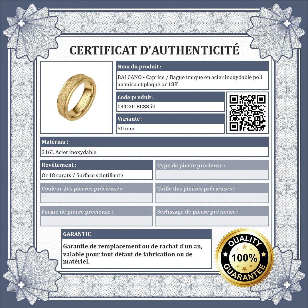 BALCANO - Caprice / Bague unique en acier inoxydable poli au mica et plaqué or 18K