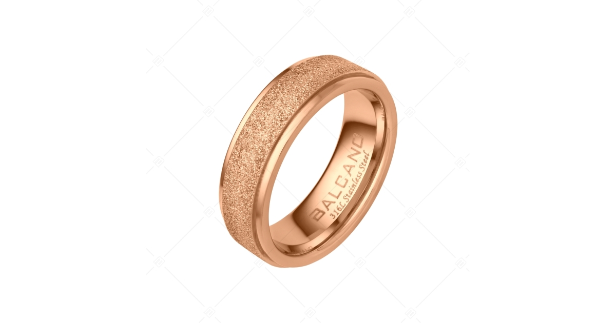 Bague unique avec surface étincelante, plaqué or rose 18K. Fabriqué en acier inoxydable médical 316L de haute qualité, ce bijou est très résistant.