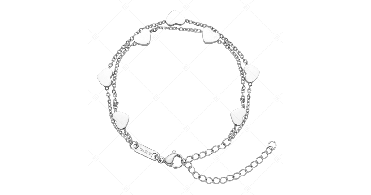 BALCANO - Coeur / Bracelet en acier inoxydable deux rangs avec cœurs, avec hautement polie