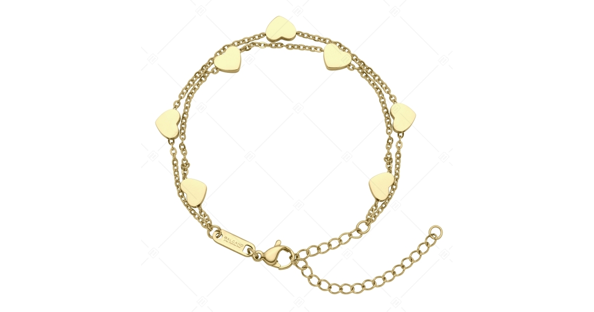 BALCANO - Coeur / Bracelet en acier inoxydable deux rangs avec cœurs, plaqué or 18K