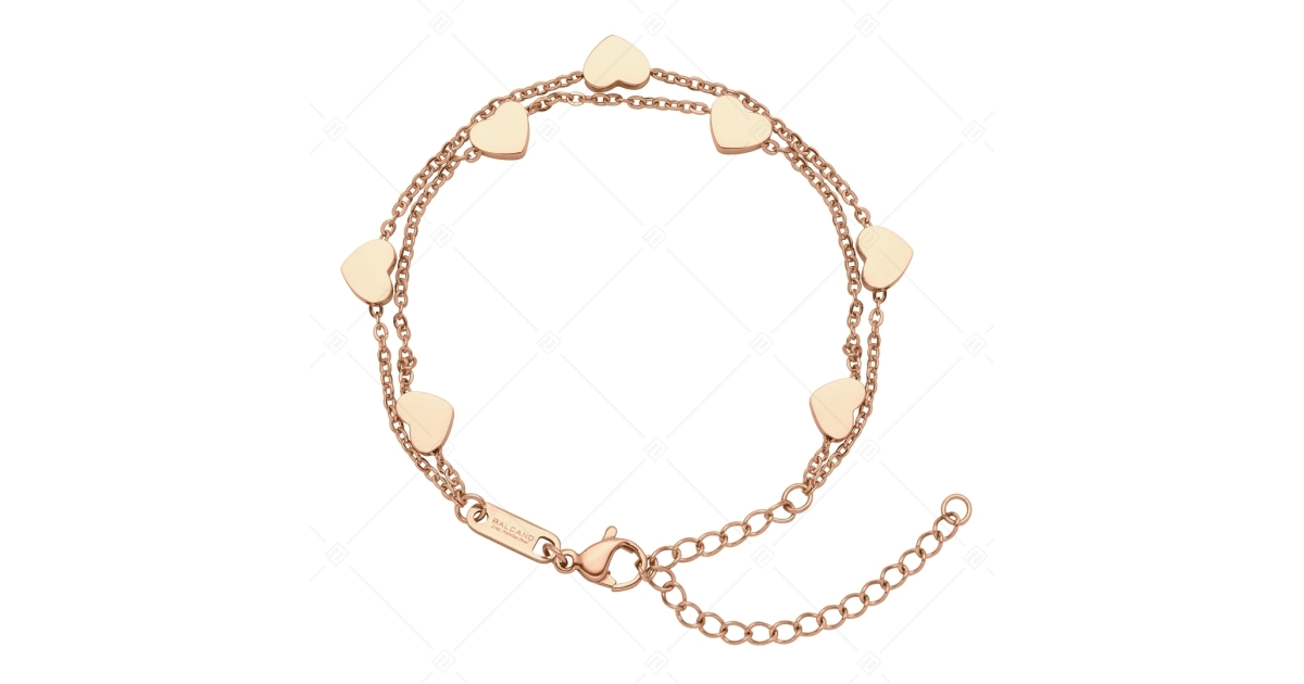 BALCANO - Coeur / Bracelet en acier inoxydable deux rangs avec cœurs, plaqué or rose 18K