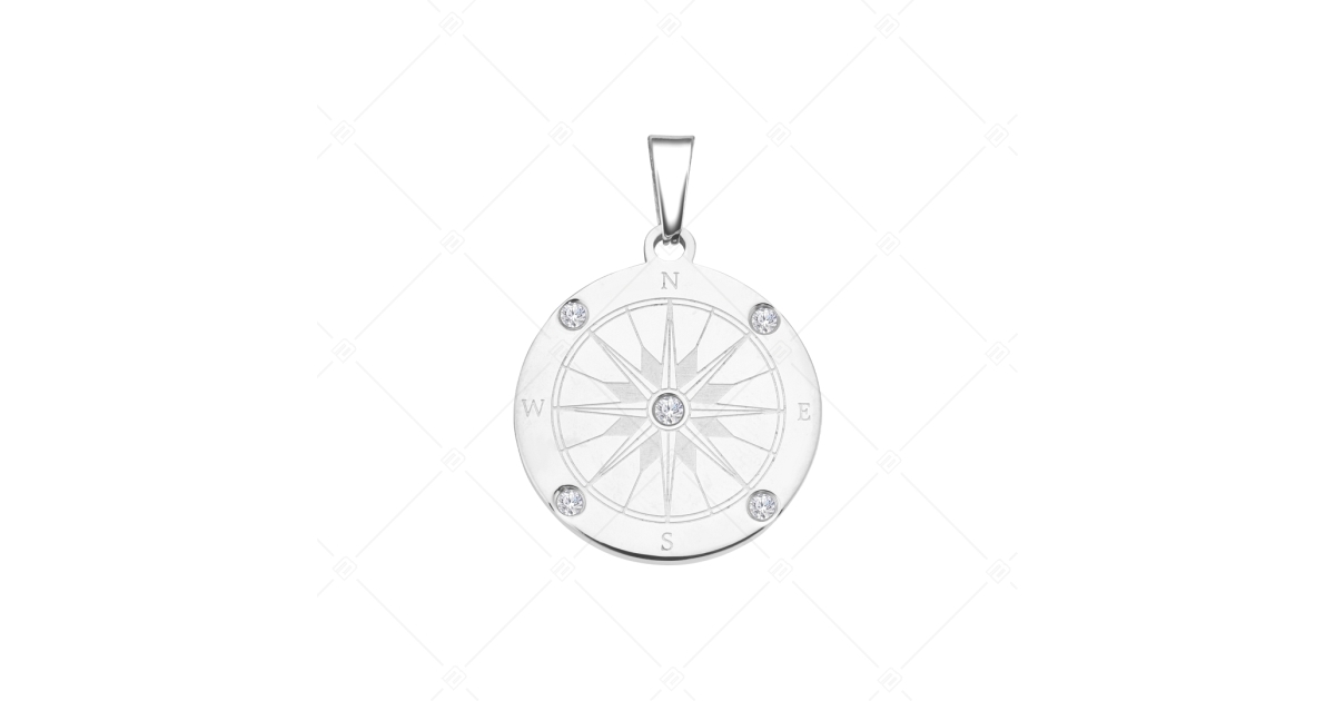 BALCANO - Compass / Pendentif boussole avec pierres de zirconium, avec hautement polie