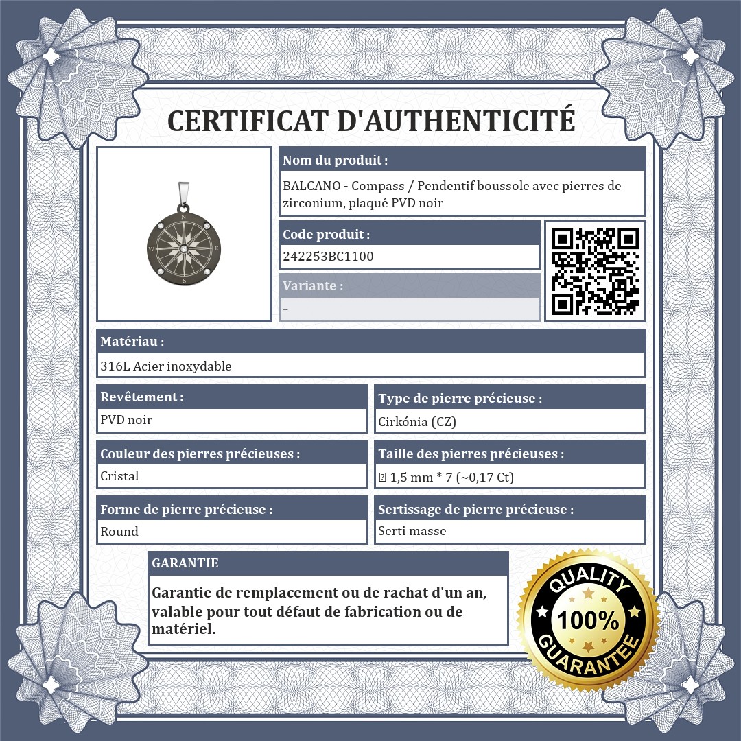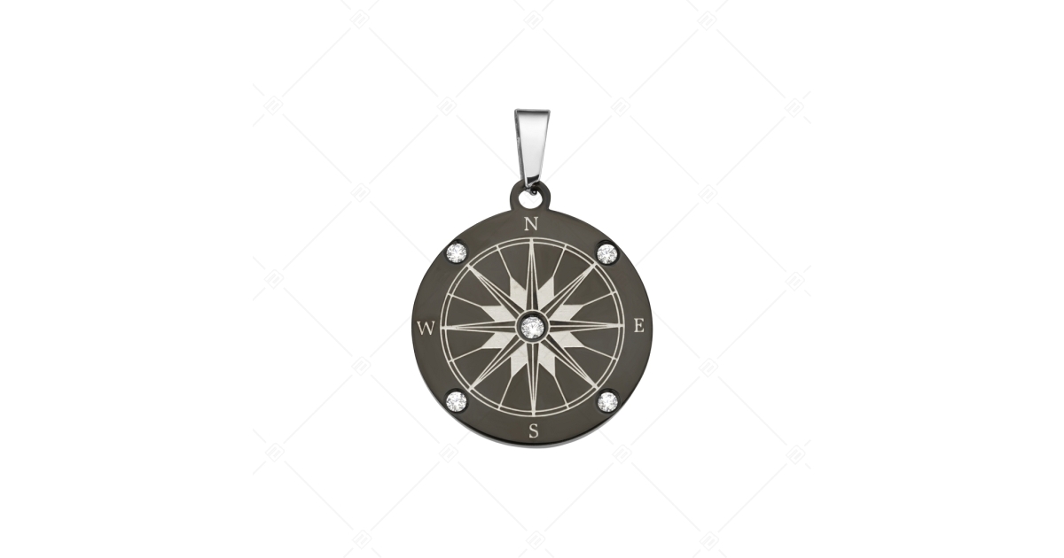 BALCANO - Compass / Pendentif boussole avec pierres de zirconium, plaqué PVD noir