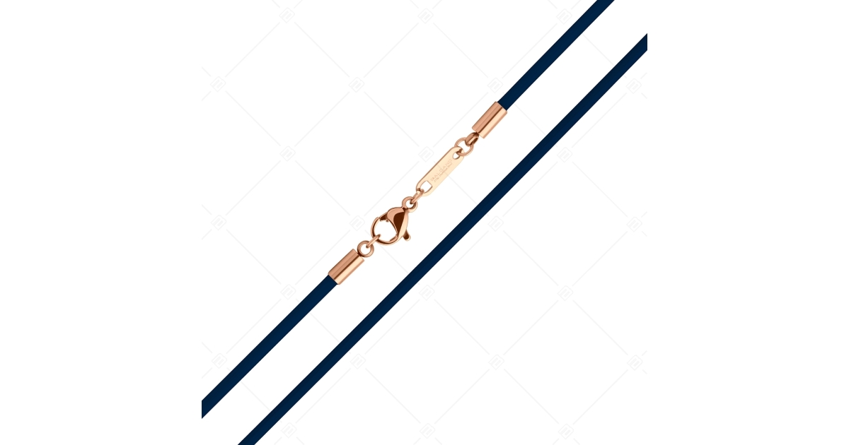 BALCANO - Cordino / Collier en cuir bleu foncé avec fermoir à pince de homard en acier inoxydable, plaqué or rose 18K -
