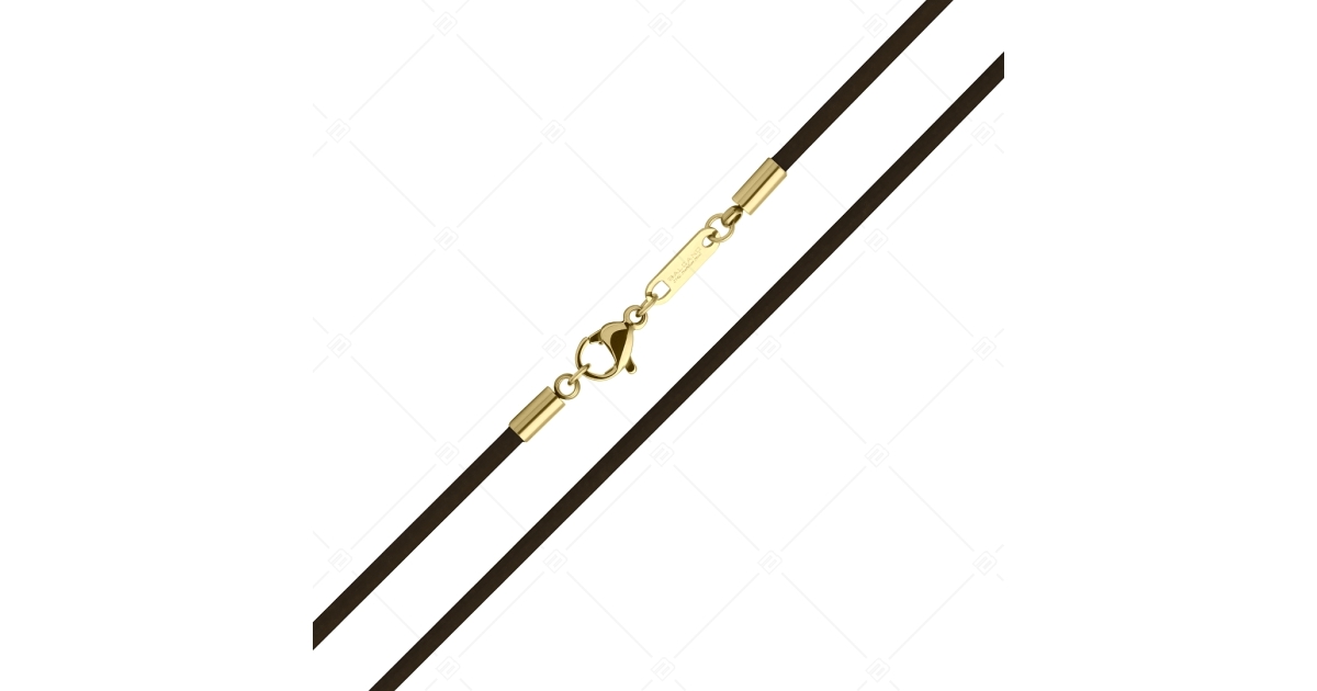 BALCANO - Cordino / Collier en cuir brun foncé avec fermoir à pince de homard en acier inoxydable, plaqué or 18K - 2 mm
