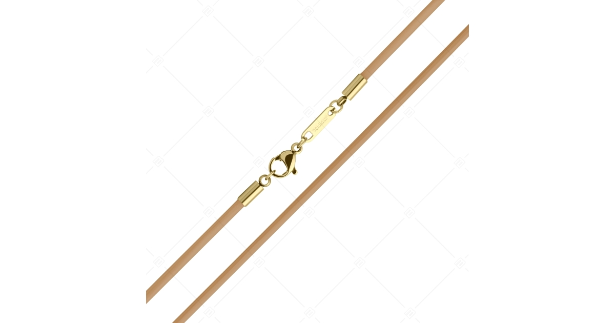 BALCANO - Cordino / Collier en cuir brun pâle avec fermoir à pince de homard en acier inoxydable, plaqué or 18K - 2 mm