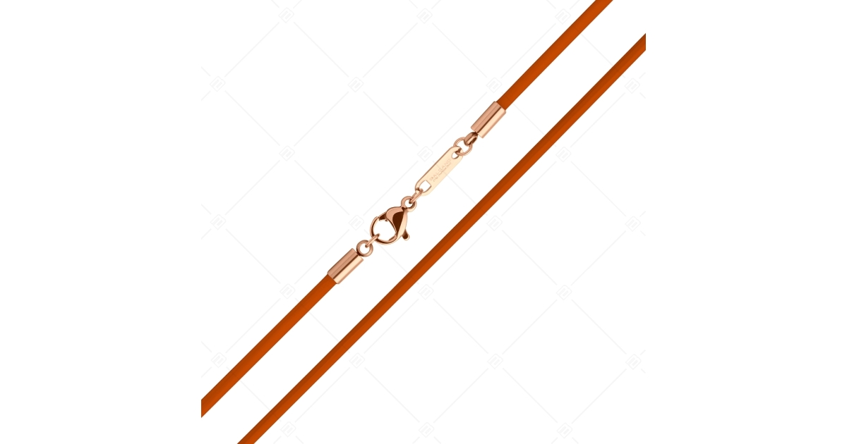 BALCANO - Cordino / Collier en cuir orange avec fermoir à pince de homard en acier inoxydable, plaqué or rose 18K - 2 mm