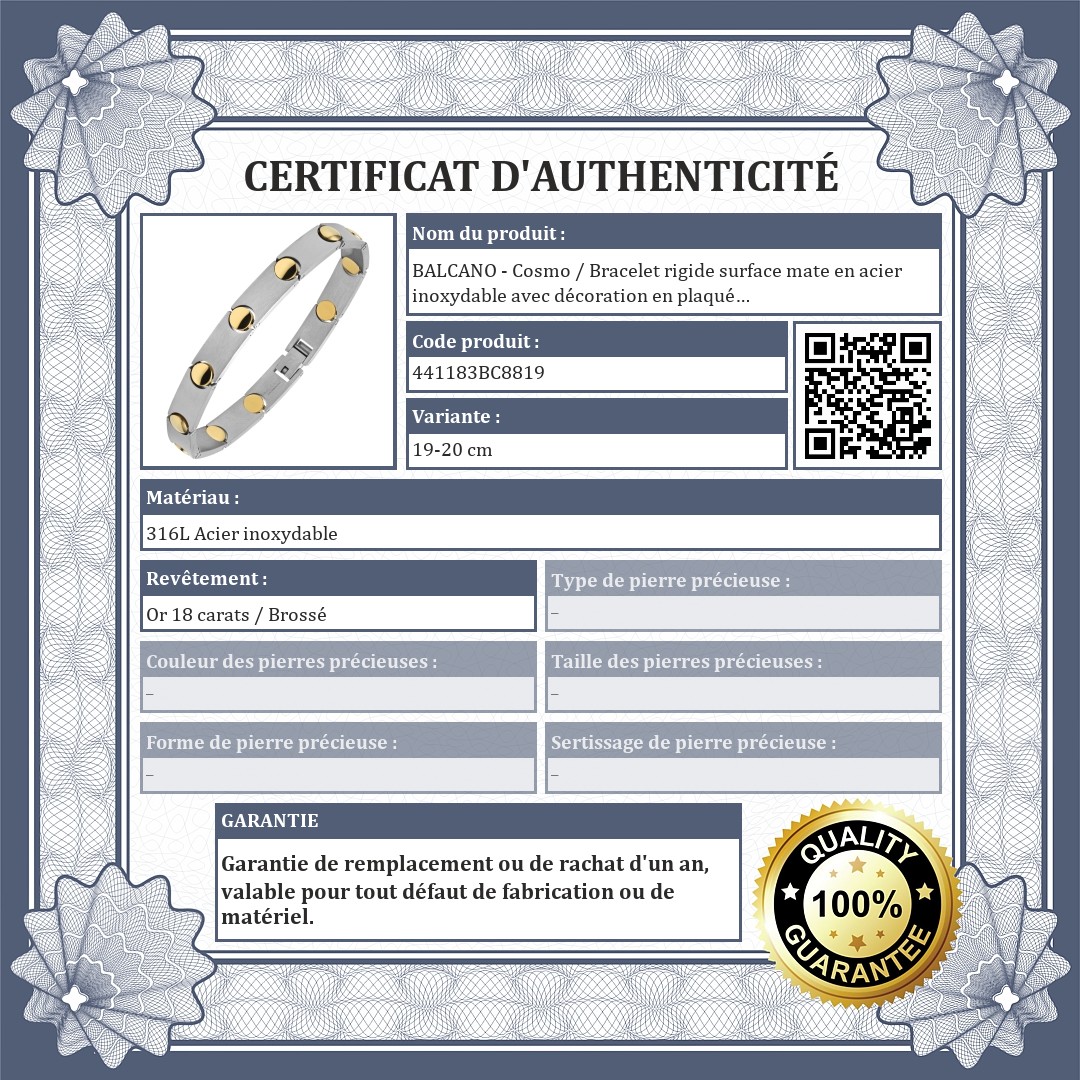 BALCANO - Cosmo / Bracelet rigide surface mate en acier inoxydable avec décoration en plaqué or 18K
