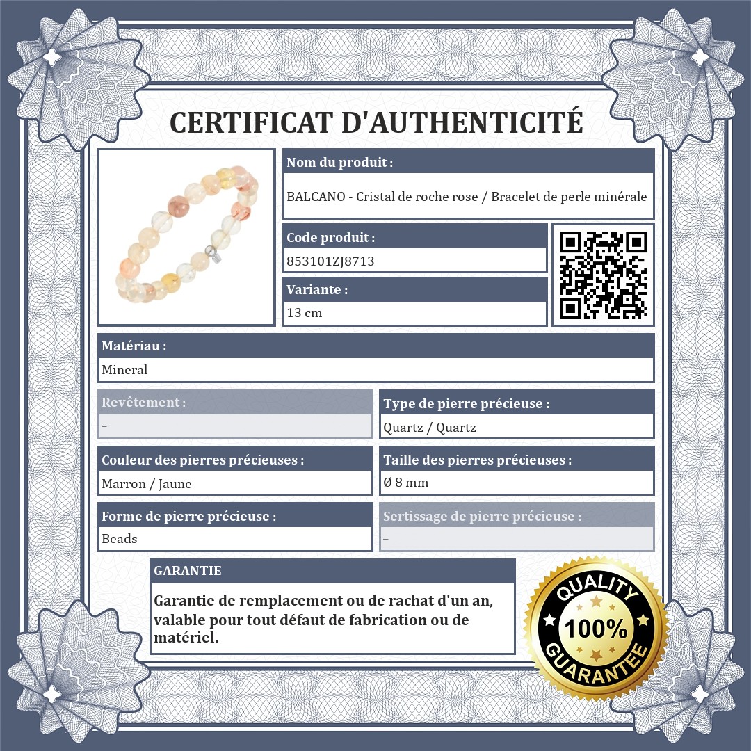 BALCANO - Cristal de roche rose / Bracelet de perle minérale