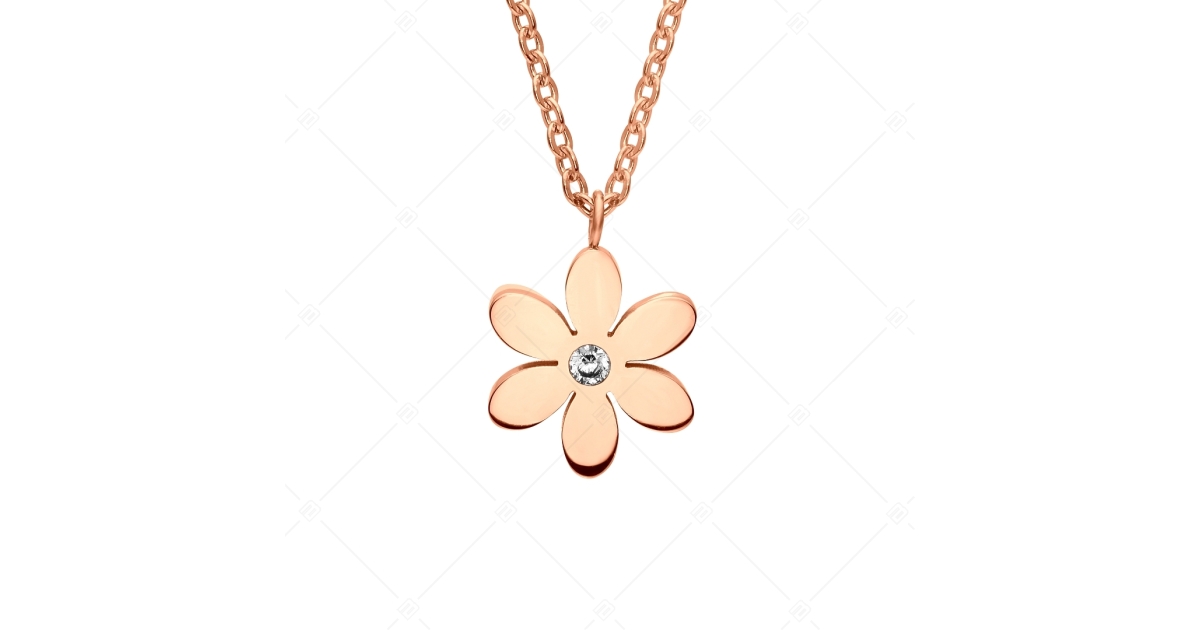 BALCANO - Dahlia / Collier ancre en acier inoxydable avec pendentif fleur, plaqué or rose 18K