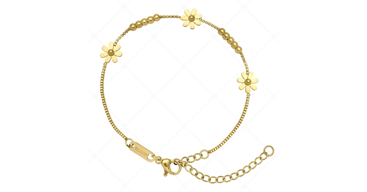 BALCANO - Daisy / Bracelet en acier inoxydable avec pendentif marguerite, plaqué or 18K