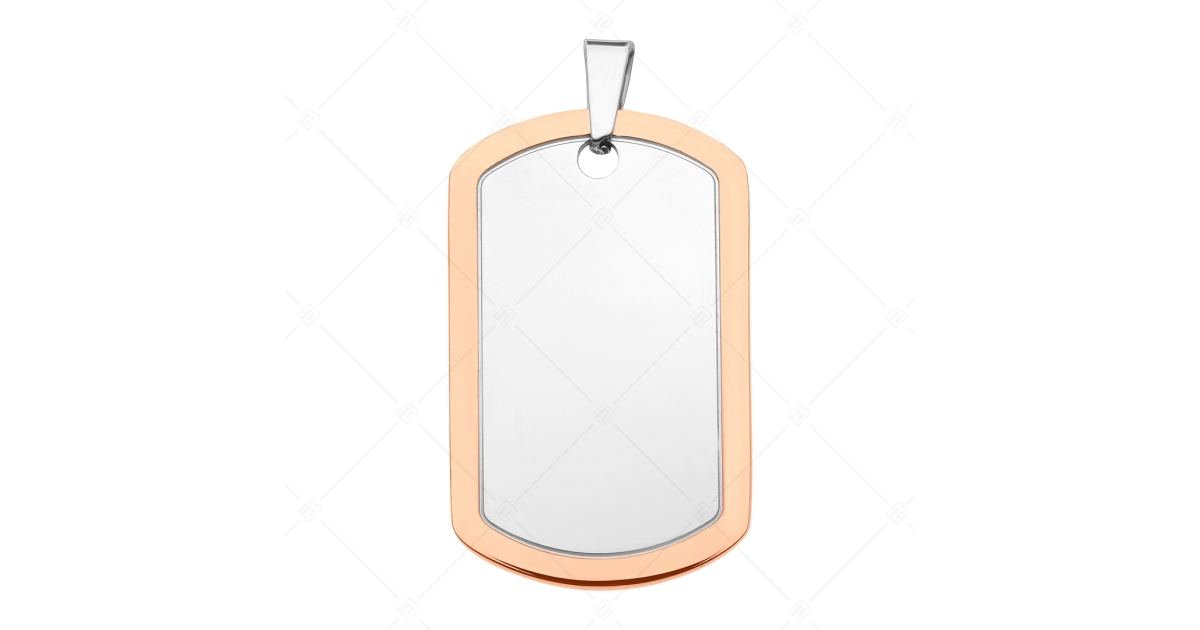 BALCANO - Dog Tag / Pendentif plaque d'identité militaire en acier inoxydable avec hautement polie et plaqué or rose 18K