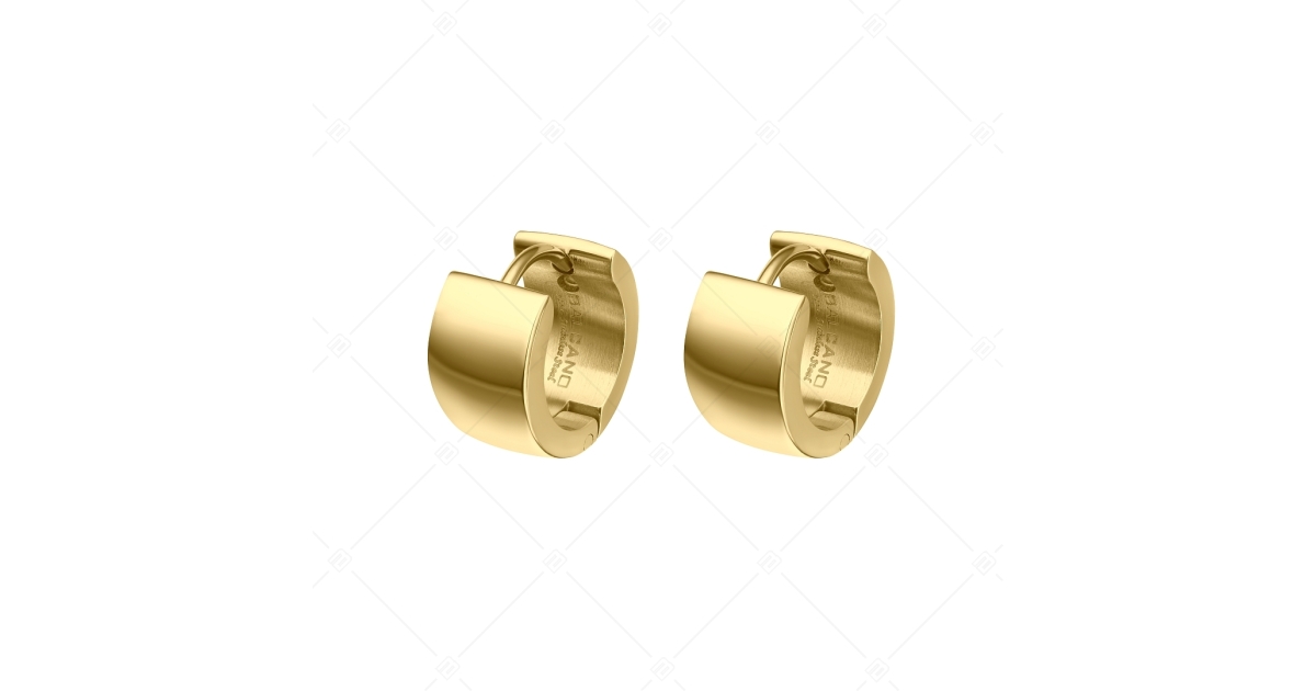 Surface légèrement convexe, boucles d'oreilles créoles. Bijoux en acier inoxydable de qualité médicale 316L, qui grâce à son matériau ne s'usent pas et ne se décolorent pas . Plaqué or 18K.