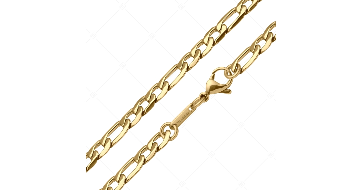 BALCANO - Figaro / Collier Figaro à maille 3+1 en acier inoxydable plaqué or 18K - 6 mm