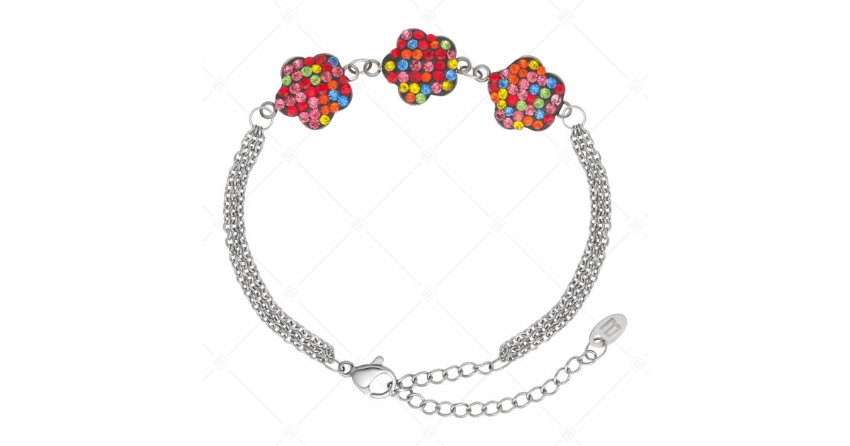 BALCANO - Fiore / Bracelet en acier inoxydable en chaîne à trois rangs avec charms en cristal en forme de fleur