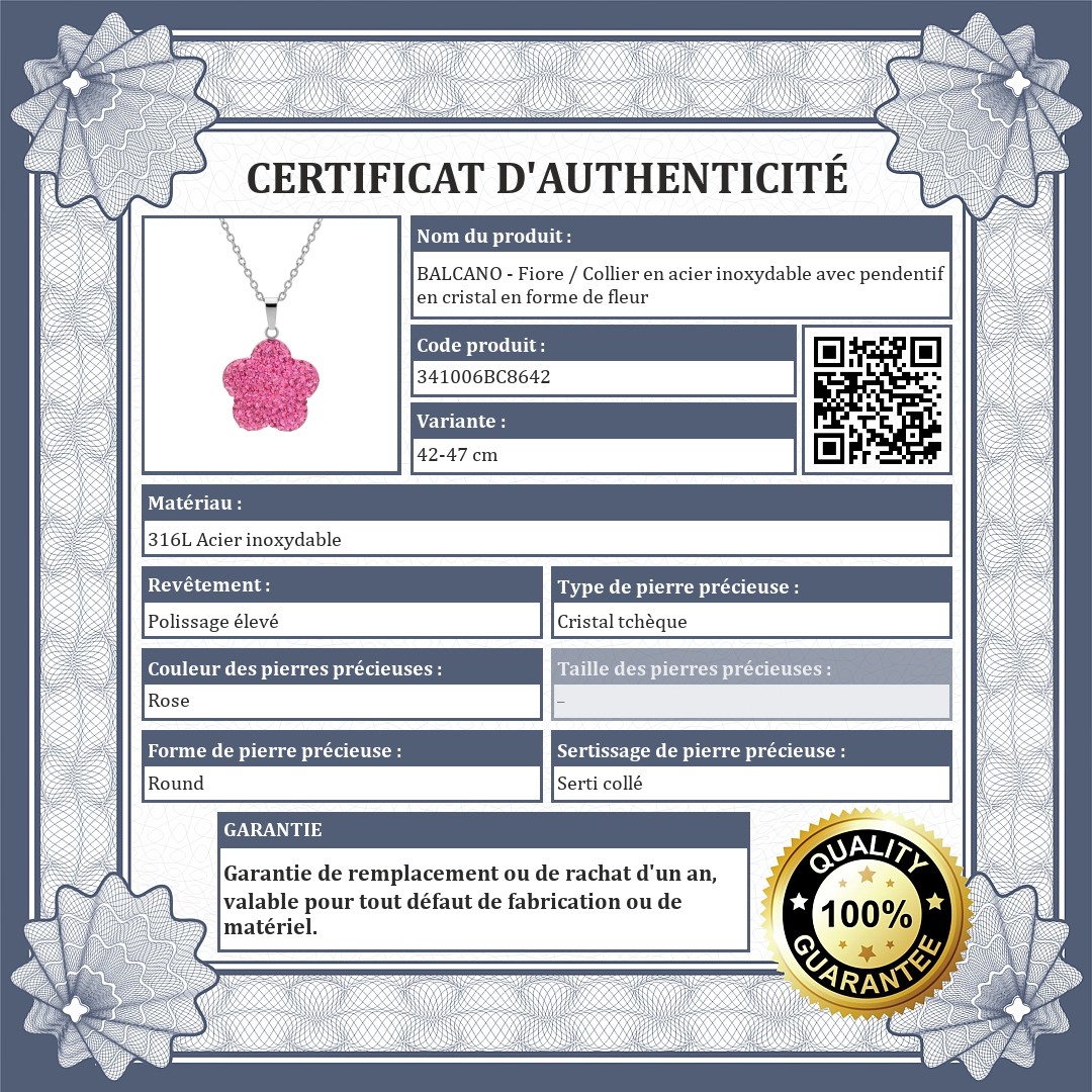 BALCANO - Fiore / Collier en acier inoxydable avec pendentif en cristal en forme de fleur