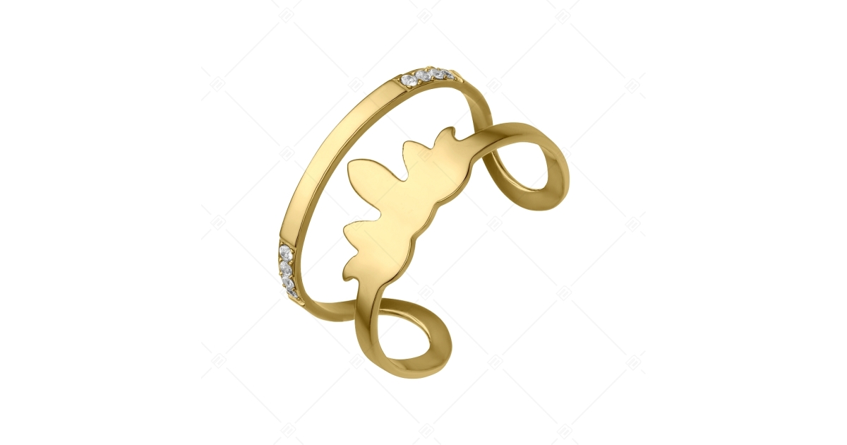 BALCANO - Fire / Anneau d'orteil en acier inoxydable en forme de feu avec pierres en zinconia, plaqué or 18K