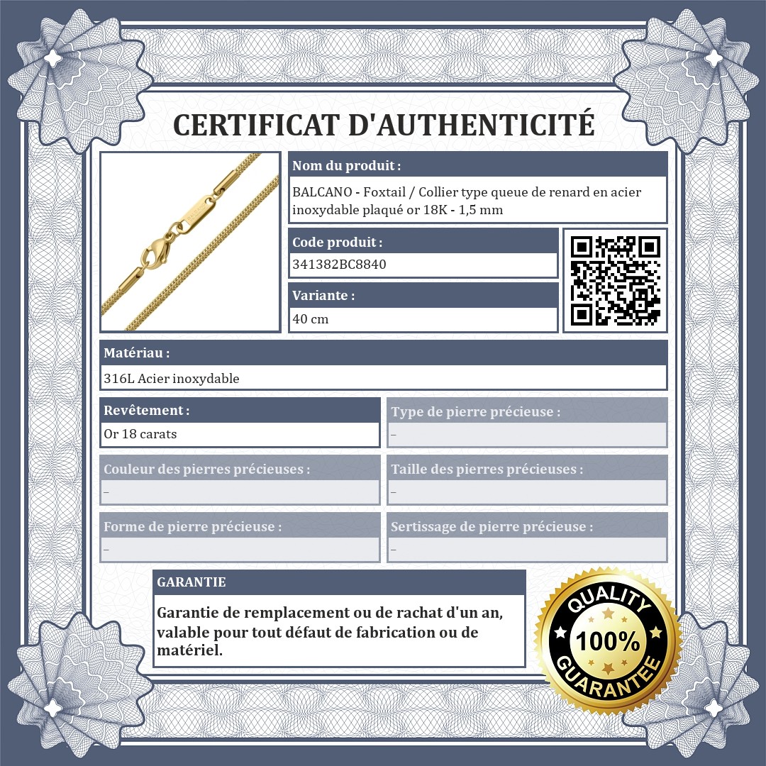 BALCANO - Foxtail / Collier type queue de renard en acier inoxydable plaqué or 18K - 1,5 mm