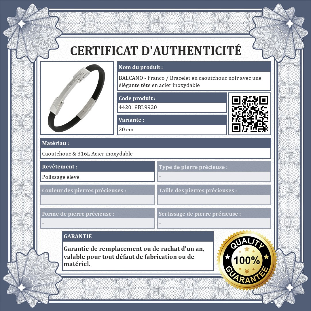 BALCANO - Franco / Bracelet en caoutchouc noir avec une élégante tête en acier inoxydable