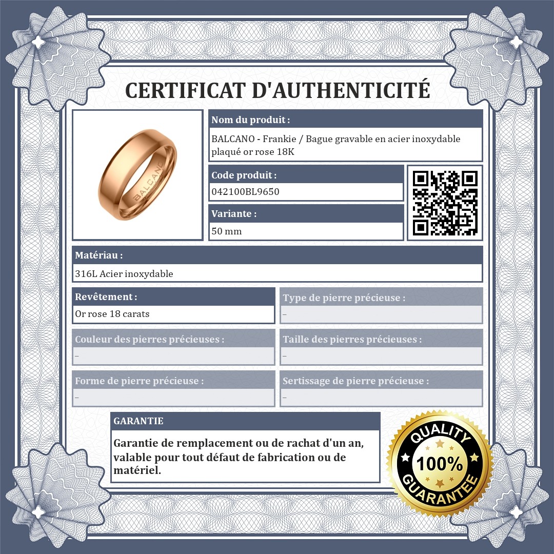 BALCANO - Frankie / Bague gravable en acier inoxydable plaqué or rose 18K