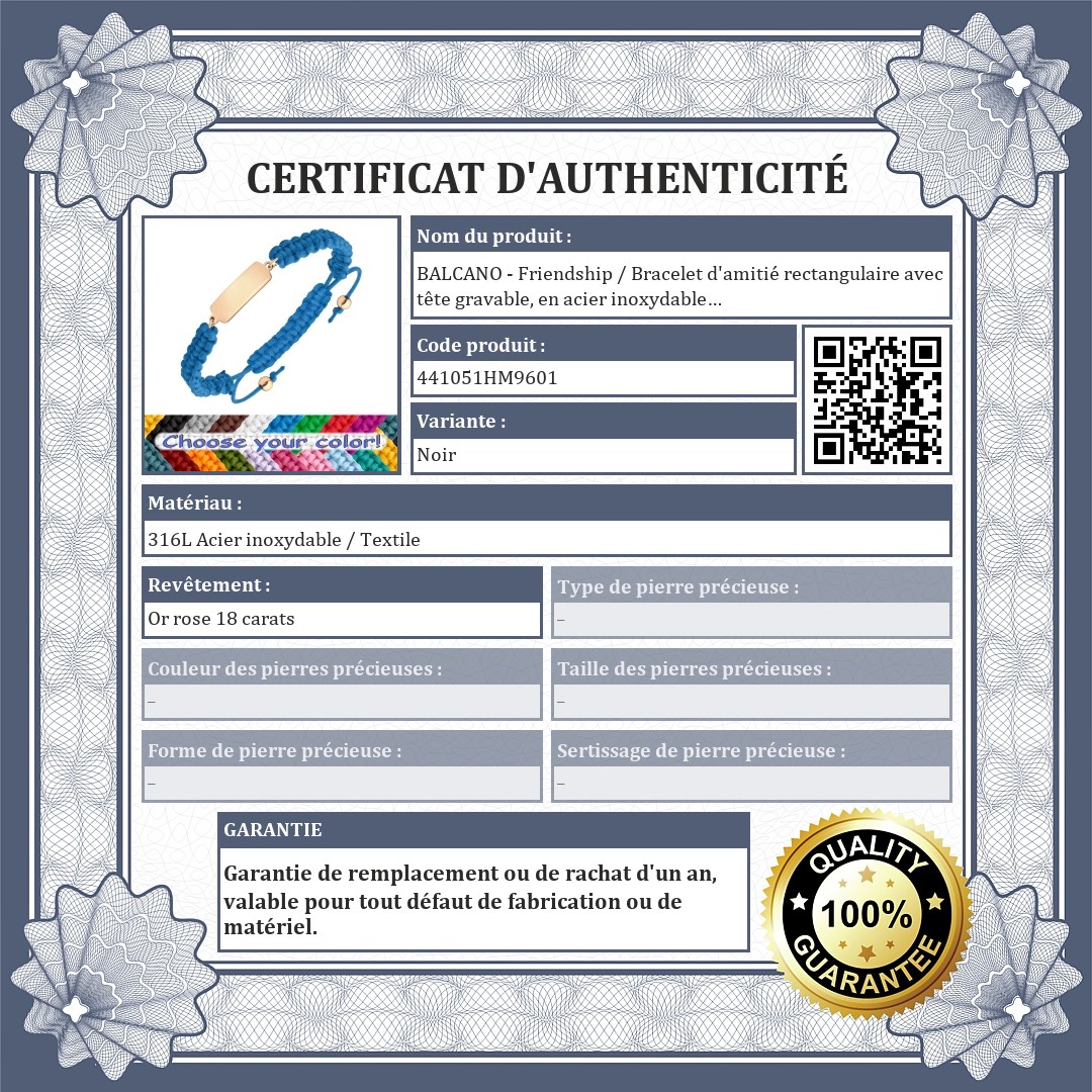 BALCANO - Friendship / Bracelet d'amitié rectangulaire avec tête gravable, en acier inoxydable plaqué or rose 18K