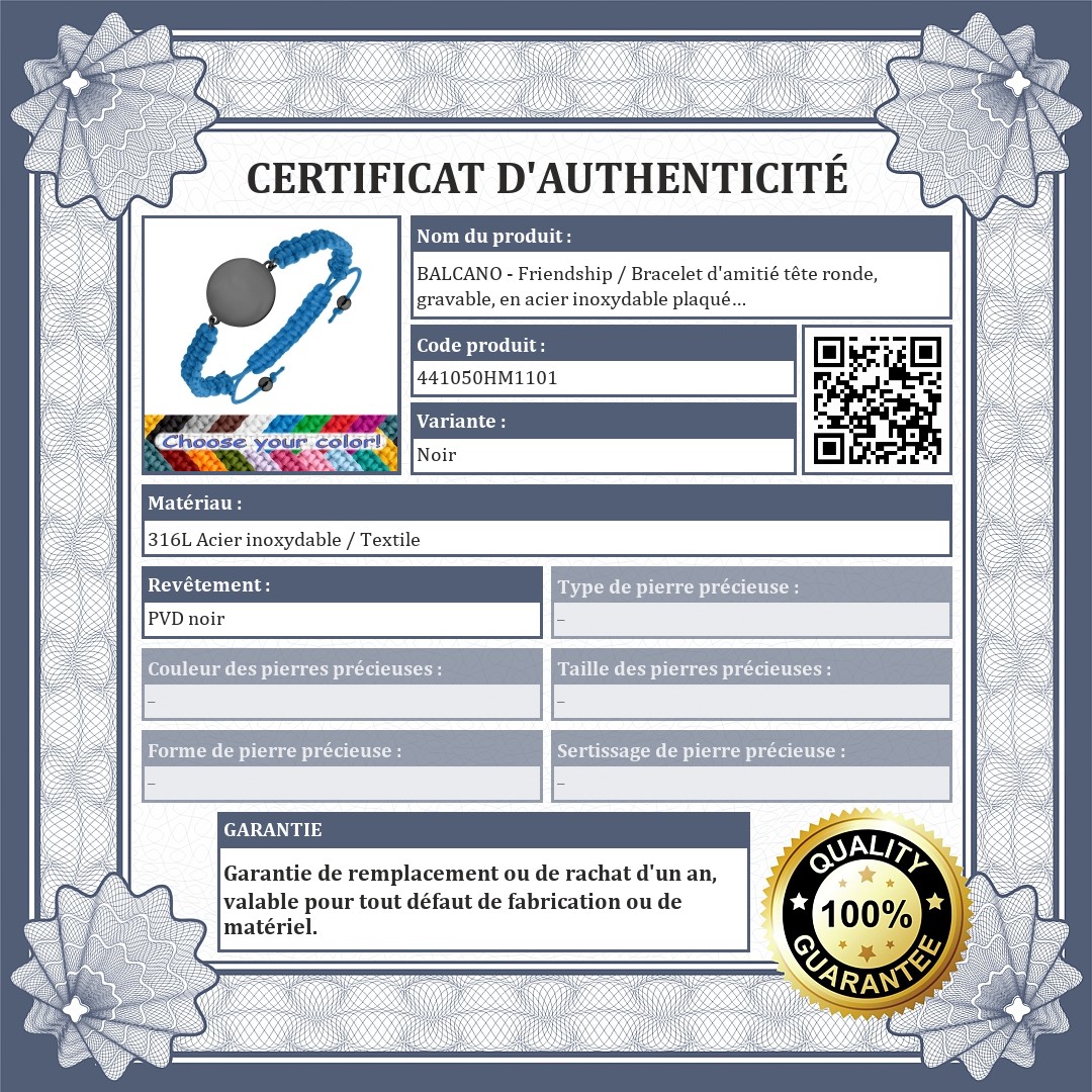 BALCANO - Friendship / Bracelet d'amitié tête ronde, gravable, en acier inoxydable plaqué PVD noir