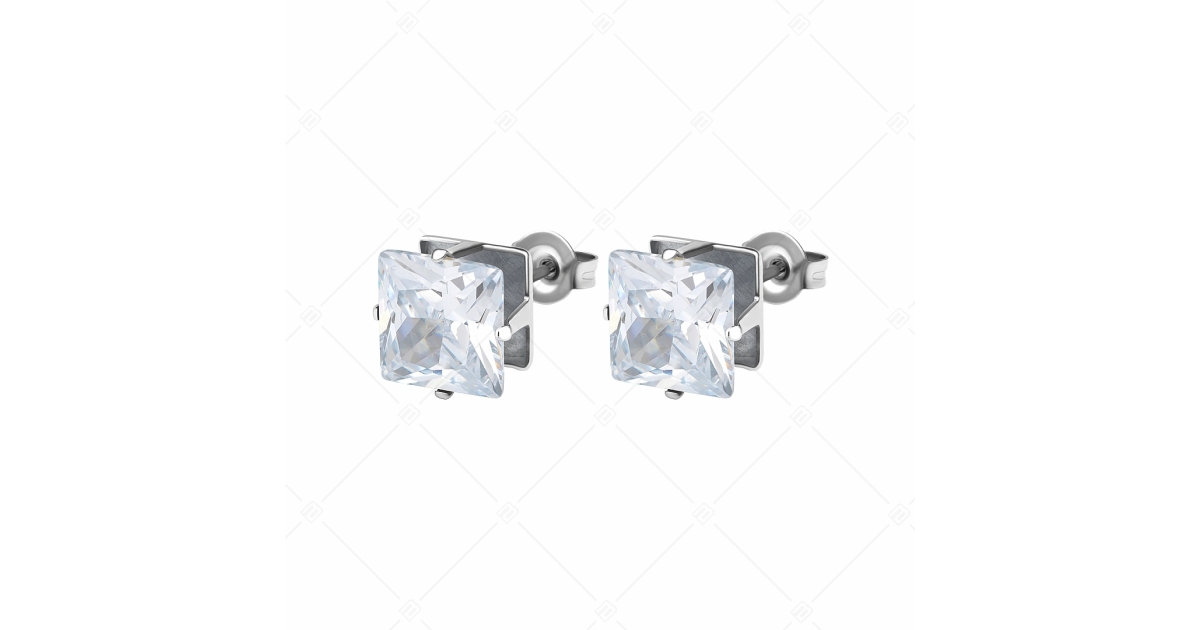 Boucles d'oreilles percées en pierre de zirconium, forme carrée, transparente à l'eau, en tailles 6 mm et 8 mm. Bijoux en acier inoxydable de qualité médicale 316L, qui ne s'usera pas et ne se décolorera pas en raison de son matériau.