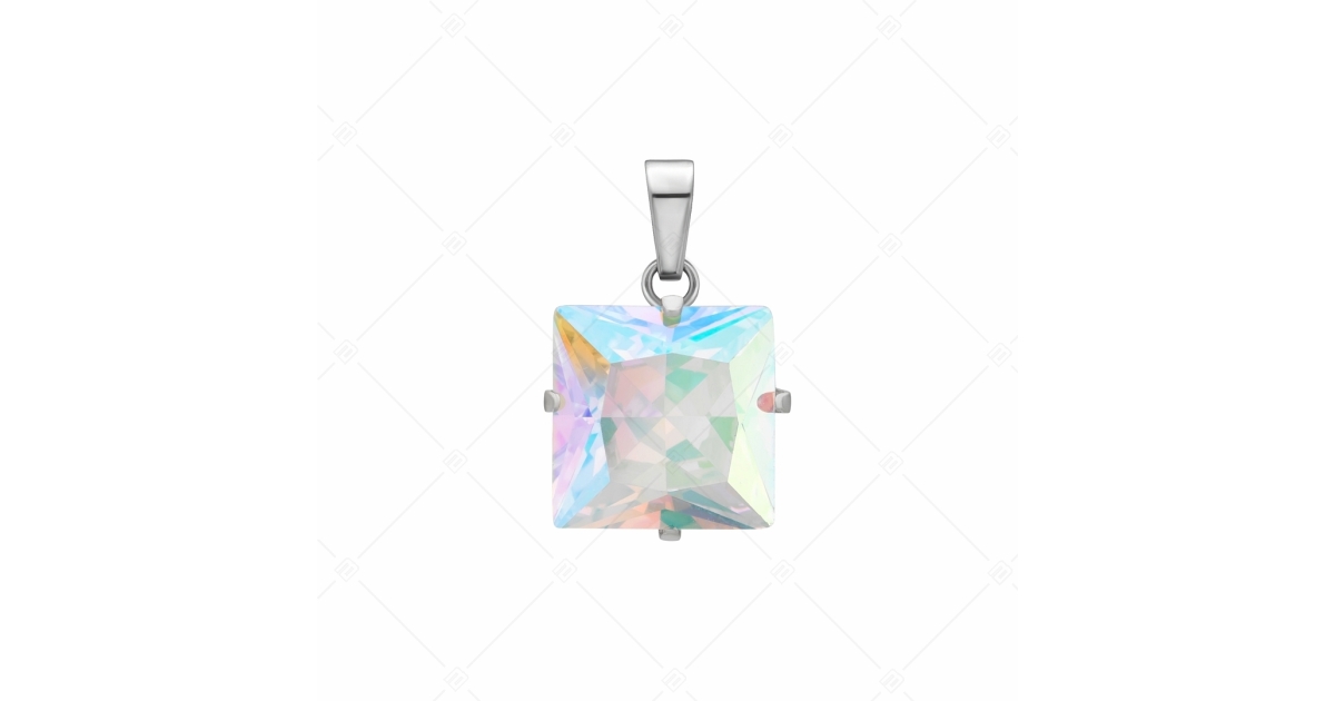 Pendentif carré coloré, avec jeu de couleur, en pierre de zirconium. Des bijoux en acier inoxydable de qualité médicale 316L qui ne terniront pas et ne se décoloreront pas grâce à leur matériau.
