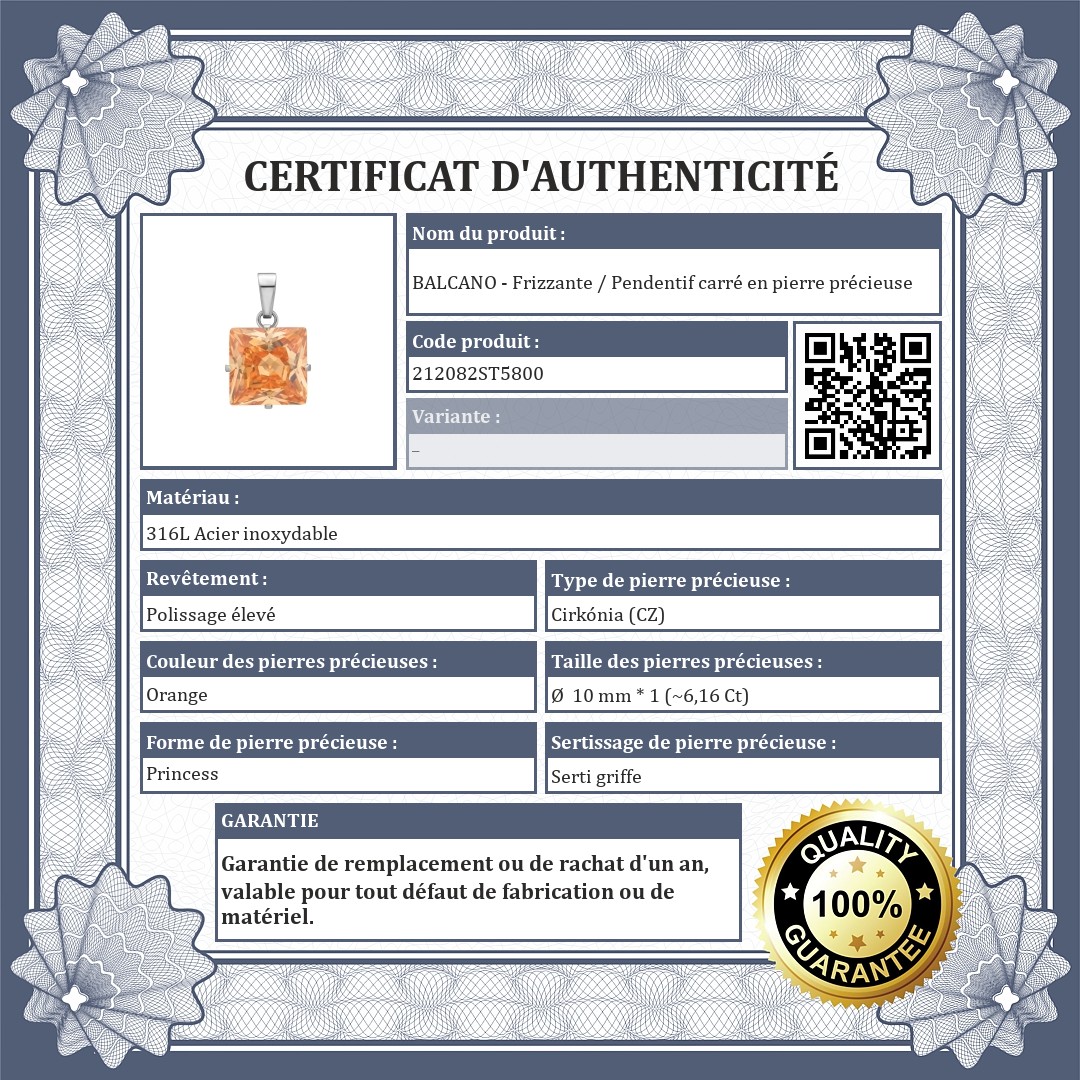 BALCANO - Frizzante / Pendentif carré en pierre précieuse
